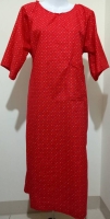 Silk Cotten Cream Red Pattern Dress